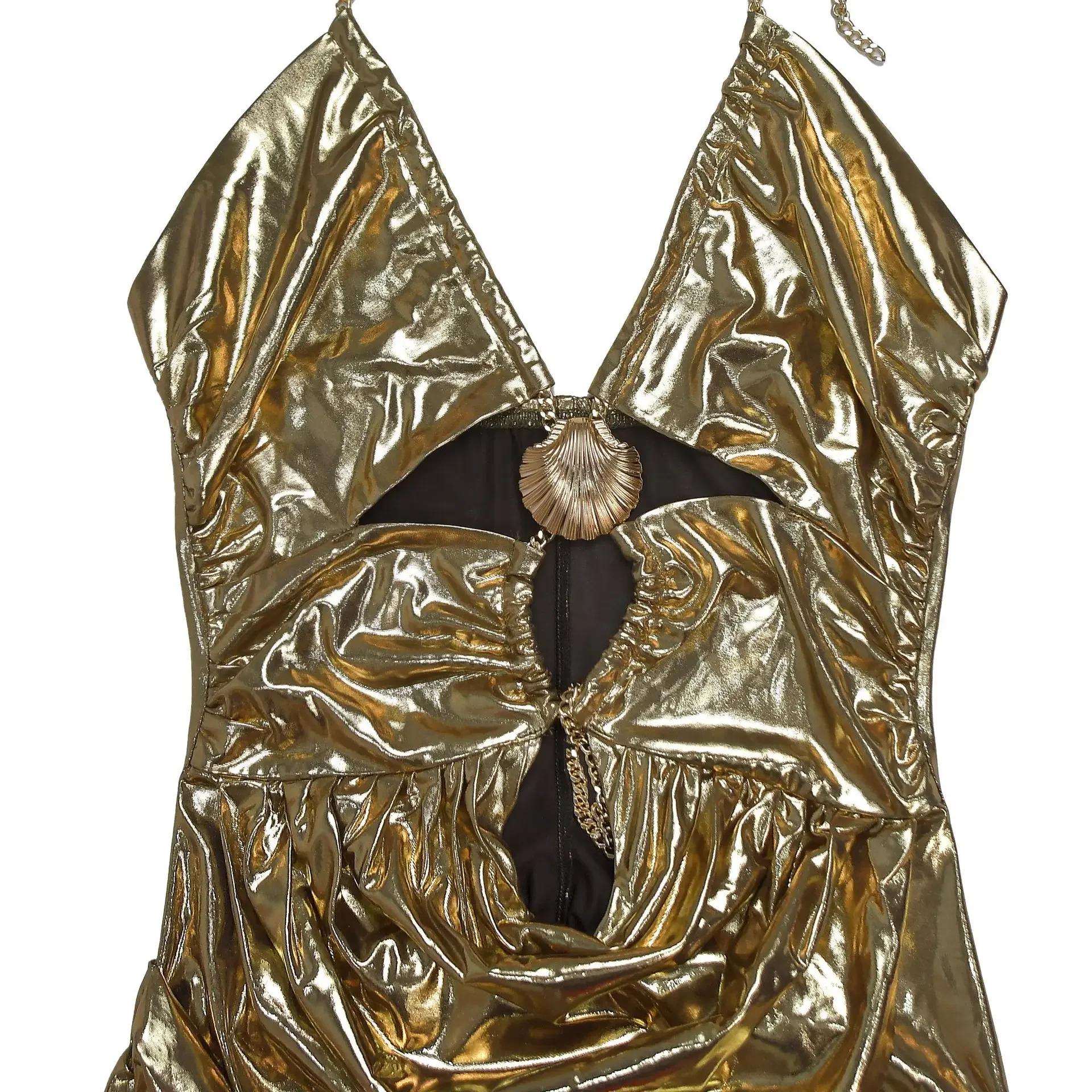 • Gold Chain Detail : The gold chain accent adds a touch of elegance and sophistication, making this dress perfect for special occasions.