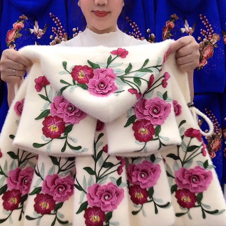 Mid-length Middle Aged Elderly Mother Imitation Mink Velvet Coat Autumn Winter Thicken Hooded Cardigan Women Knitted Jacket U918