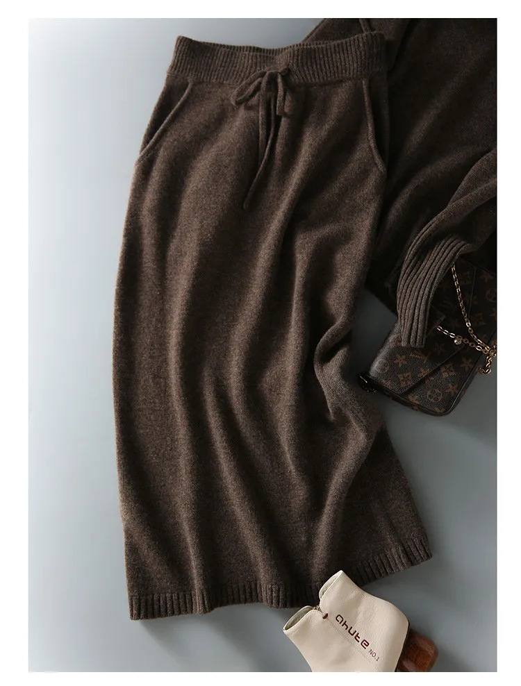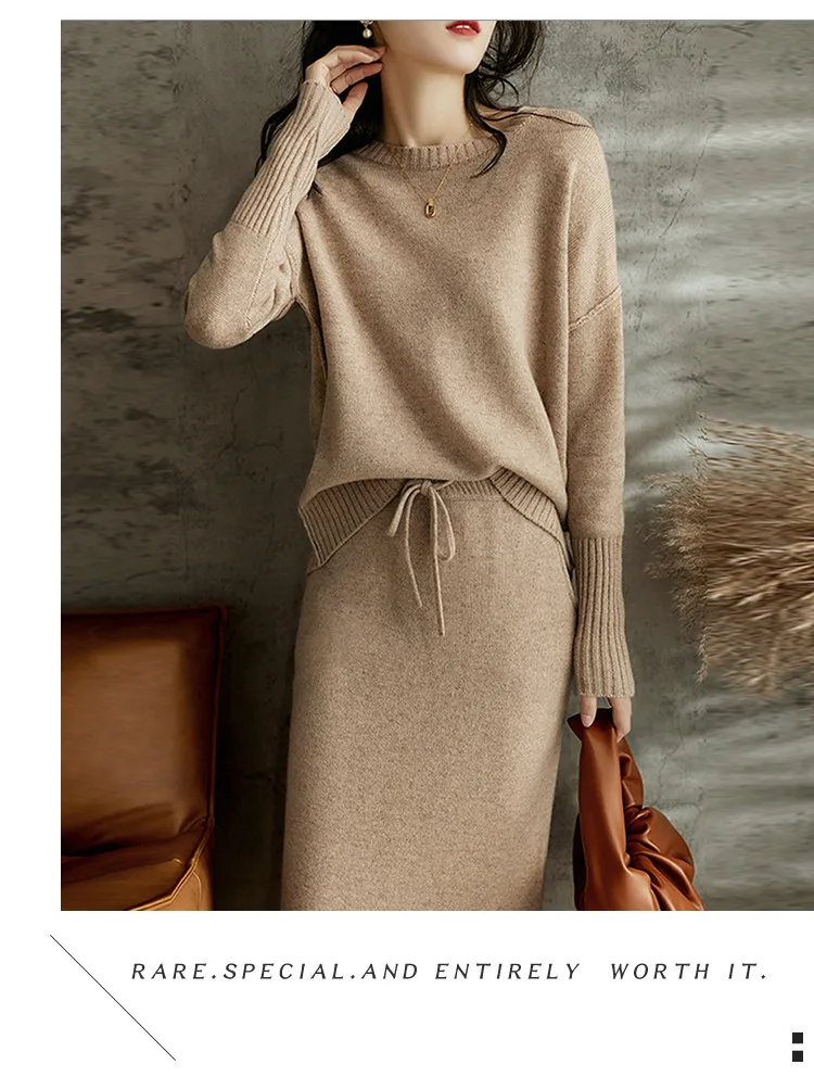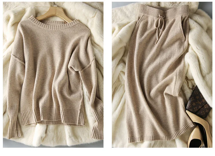Skirt Suit Women Knitting 2 Piece Set Pullover Sweater Knitted Skirts Jumpers Autumn Winter Ensemble Vintage Knitwear Outfits